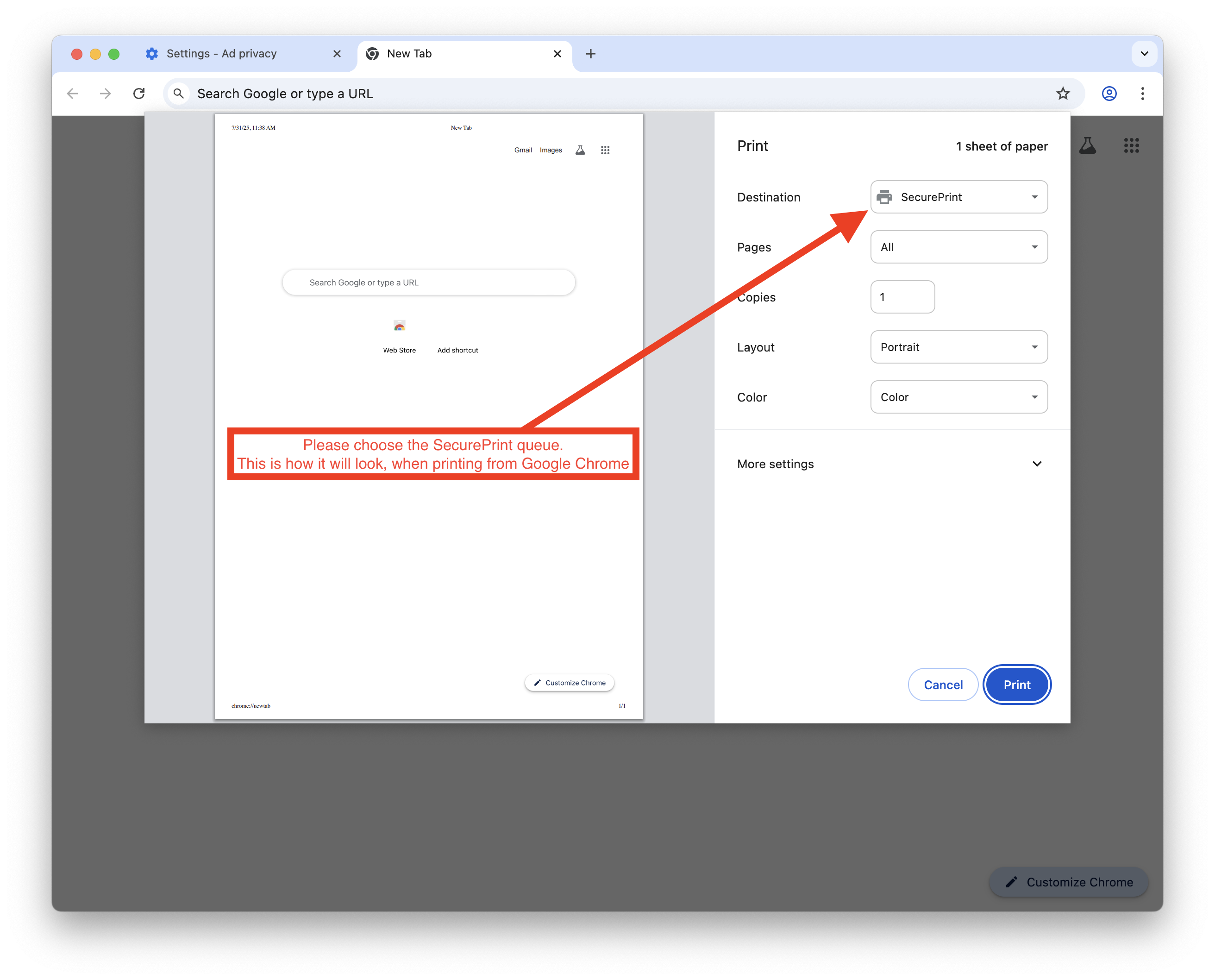 1. Instead of a printer named per-room, or location, you will now find a printer called "SecurePrint." Please choose this print queue when printing from your Otis issued work computer.