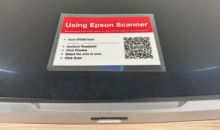 We’ve labeled all printers with pricing and QR codes that link to printing guides, and all scanners with instructions and information on how to obtain assistance.