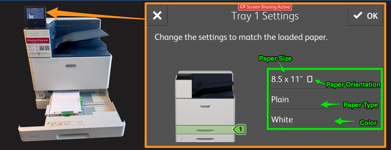 Most printing issues in the labs, including those on the Fashion 3rd floor, are caused by incorrect paper size, orientation, paper type, or color settings.
