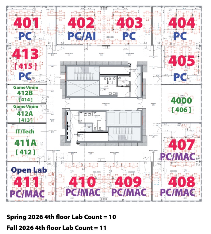 Beginning in August 2026 (Fall 2026 semester), the Ahmanson 4th- and 5th-floor computer labs will be reconfigured to better support instructional needs.